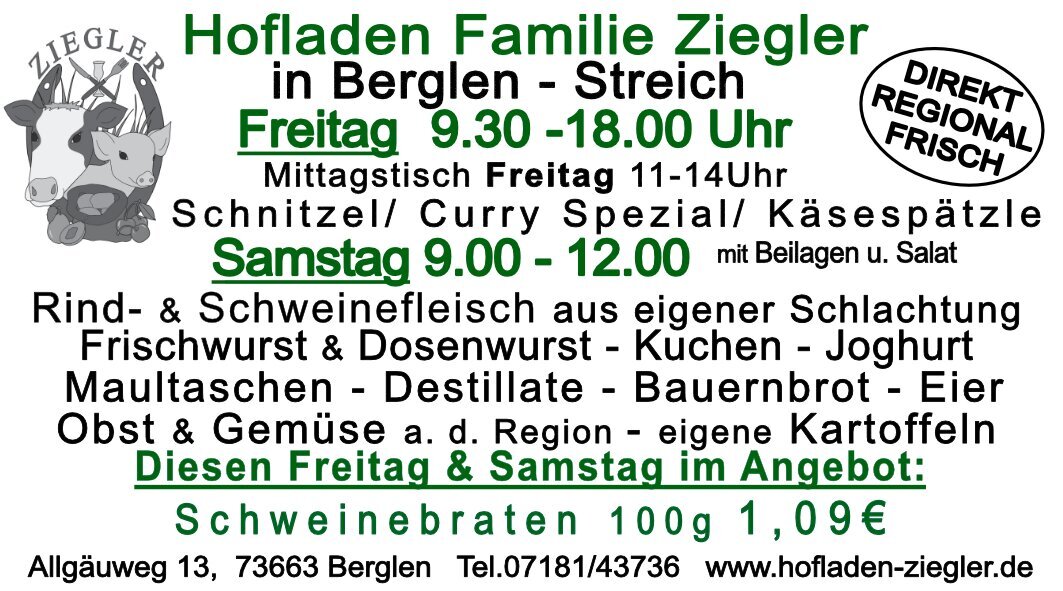 Herzlich Willkommen bei der Familie Ziegler in Berglen-Streich!